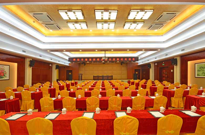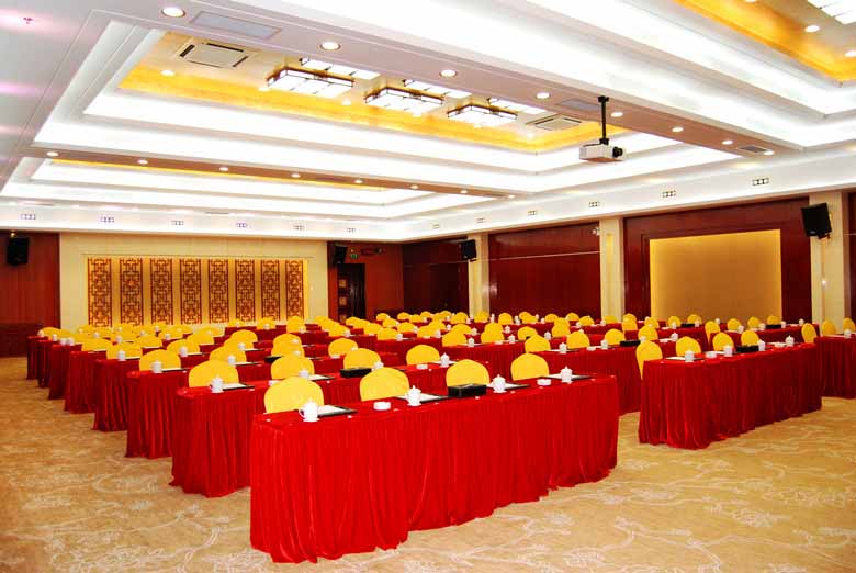 新銀盞大型多功能會議室,位于會議中心中間位置,面積400平方米,可同時容納300余人。大會議中心設有半圓形舞臺約40平方米、舞臺背景板9.2米寬*3.2米高、LED橫幅11米*0.5米、投影幕布300寸。會議室免費提供茶水、紙筆、無線wife、投影儀、投影幕、音響設備、移動白板、白板筆、無線麥、講臺、簽到臺等等。會場裝修時尚簡約、環(huán)境幽靜、設施齊全,能夠滿足各種公司年會,會議,培訓,演出,演講等不同的需求。