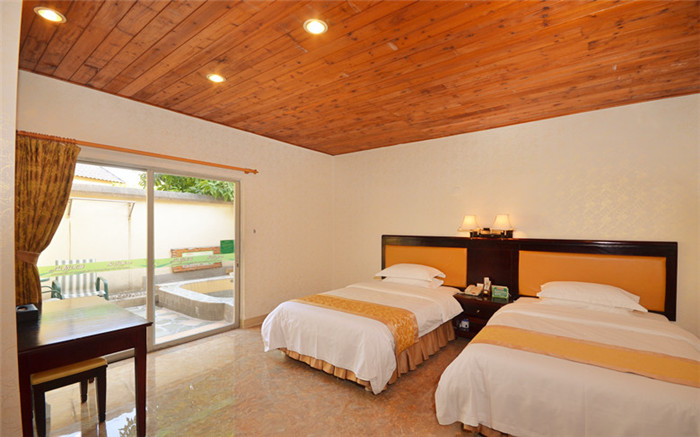 東區(qū)別墅是新銀盞最具特色的住房,位于溫泉區(qū)內(nèi)。這些別墅的外觀設(shè)計(jì)富有創(chuàng)意。同時(shí)這些別墅建筑均與周邊的景觀完美融合,呈現(xiàn)出生態(tài)建筑的自然之美和別墅外觀。別墅的房型有多種選擇房型分別有:蜜月房、豪華雙人房、豪華兩房一廳、復(fù)式兩房一廳、豪華一房一廳、豪華親子房。東區(qū)所有客房房型房間都帶室內(nèi)溫泉池,房間內(nèi)配備空調(diào)、書桌、電話、液晶電視、房?jī)?nèi)保險(xiǎn)箱、洗刷用品、淋浴設(shè)施,吹風(fēng)機(jī)、免費(fèi)瓶裝水、免費(fèi)WiFi等設(shè)施,房間內(nèi)還配備特色小食和飲料(有償食用)住房包含了露天無(wú)限次溫泉門票和自助早餐,健身房、水療SPA、羽毛球、乒乓球、臺(tái)球等,無(wú)限量免費(fèi)提供飲料,水果。溫泉總的有60幾個(gè)露天溫泉池。其中有養(yǎng)生區(qū)(如茉莉花池、人參池、牛奶池、酒池等)、水療SPA按摩區(qū)、高溫池等等特色溫泉池。因東區(qū)房型較多,房間內(nèi)部結(jié)構(gòu)不同,如需詳細(xì)了解請(qǐng)?jiān)诰€咨詢哦。