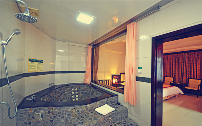商務(wù)樓客房為于公司主樓,屬于商務(wù)型客房,層高6層,站在商務(wù)客房內(nèi)可一覽景區(qū)風(fēng)景,清晨,推開窗戶。微風(fēng)吹來,一陣清新、幽香、淡雅的泥土氣息迎面而來。商務(wù)樓設(shè)有三種房型,分別為豪華一房一廳(房間帶室內(nèi)溫泉池)、豪華雙人房(不帶室內(nèi)溫泉)、豪華三人房(不帶室內(nèi)溫泉)酒店客房豪華溫馨,配有空調(diào)、書桌、電話、液晶電視、房內(nèi)保險箱、洗刷用品、淋浴設(shè)施,吹風(fēng)機、免費桶裝水、免費WiFi等設(shè)施,住房包含了露天無限次溫泉門票和自助早餐,健身房、水療SPA、羽毛球、乒乓球、臺球等,無限量免費提供飲料,水果。溫泉總的有60幾個露天溫泉池。其中有養(yǎng)生區(qū)(如茉莉花池、人參池、牛奶池、酒池等)、水療SPA按摩區(qū)、高溫池等等特色溫泉池。如需詳細了解請在線咨詢哦。使您在度假村盡情玩樂后能夠享受溫馨的住宿。